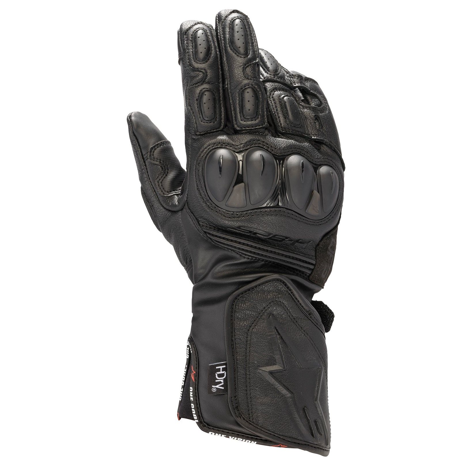 Autre élément clé, le fameux pont breveté entre l’annulaire et le petit doigt. Ce détail typique d’Alpinestars n’est pas juste un gadget marketing : il limite l’écartement et la torsion des doigts en cas de chute, réduisant le risque de fractures ou de déchirures. La manchette longue, combinée aux systèmes de serrage Velcro au poignet et sur la manchette, aide le gant à rester en place en cas de glissade, un point souvent négligé mais crucial. Les SP-8 HDRY sont certifiés CE EN13594 Niveau 1KP, ce qui garantit un minimum de résistance à l’abrasion, au déchirement et aux chocs. Oui, ce n’est pas un gant piste full niveau 2, mais pour un usage route / sport / quotidien, le niveau de protection est franchement solide. Bref, un gant pensé pour quand ça se passe mal, pas seulement pour la belle météo du dimanche.
