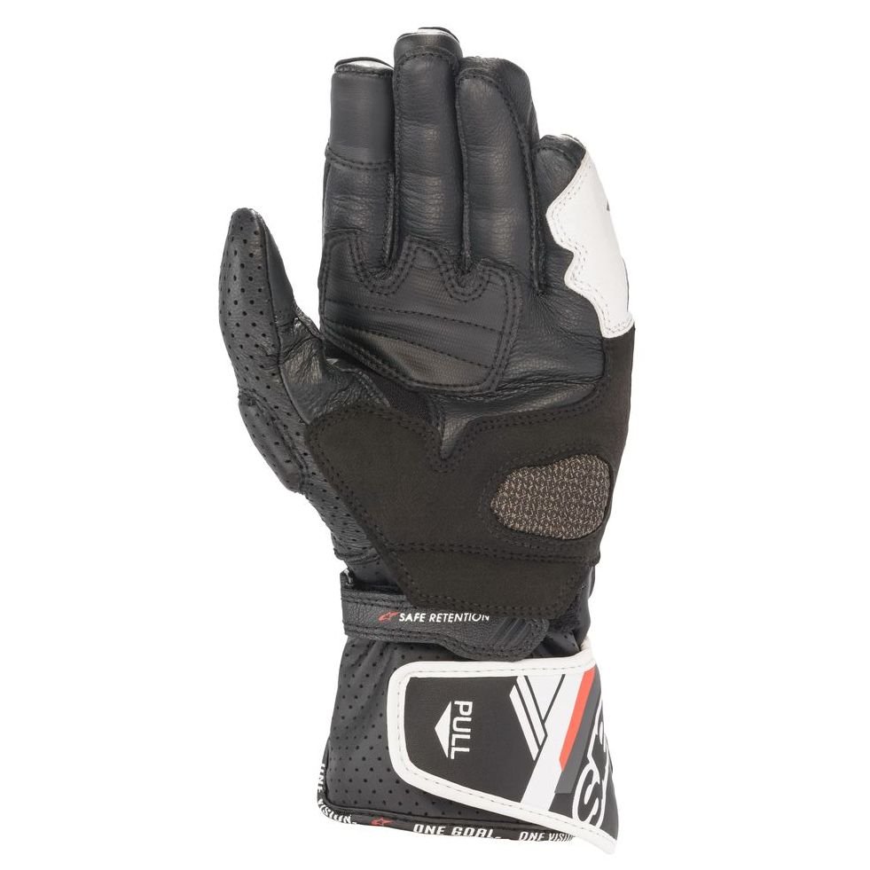 Côté matériaux, on est sur du cuir pleine fleur, avec des renforts stratégiques et un insert en microfibre/PU sur la paume pour améliorer le grip. La paume en suédé ajoute une touche à la fois esthétique et pratique, tout en améliorant la durabilité dans les zones très sollicitées. Les coutures externes sur les doigts sont bien alignées, sans surplus gênant ni fil parasite qui dépasse. Les fermetures Velcro sont larges, faciles à manipuler, et la finition des bords de manchette est propre. On sent qu’Alpinestars maîtrise sa copie sur ce segment : pas de fantaisie inutile, tout ce qui est là a une fonction. Ce n’est pas le gant le plus « fashion » du marché, mais il dégage un sérieux rassurant. En clair : c’est plus outil de pilotage que bijou, et c’est plutôt une bonne nouvelle.