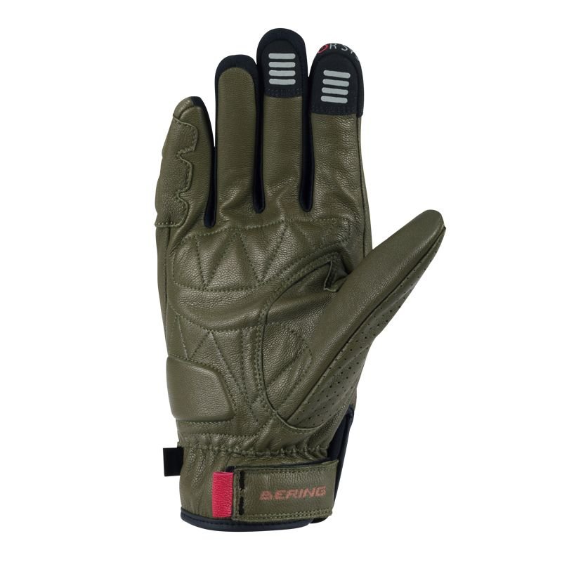 Côté finitions, Bering reste fidèle à sa réputation : c’est propre, net, et plutôt sérieux pour un gant moto été milieu de gamme. Les coutures sont régulières, les zones stressées comme la paume et les phalanges semblent bien renforcées. Le soufflet aux articulations est visuellement discret mais se voit bien une fois le gant en main, et c’est une bonne chose pour l’ergonomie. Le serrage poignet par Velcro est classique, mais fonctionne : réglage rapide, bon maintien. On apprécie aussi le grip ajouté à l’intérieur de la main, avec un aspect légèrement texturé qui promet une bonne accroche sur les poignées et les leviers. Aucun détail « gadget » ici, tout semble avoir une utilité concrète. On n’est pas sur un gant premium ultra luxueux, mais pour la catégorie, le niveau de finition est vraiment correct. En résumé : simple, bien pensé, sans effet de manche inutile.