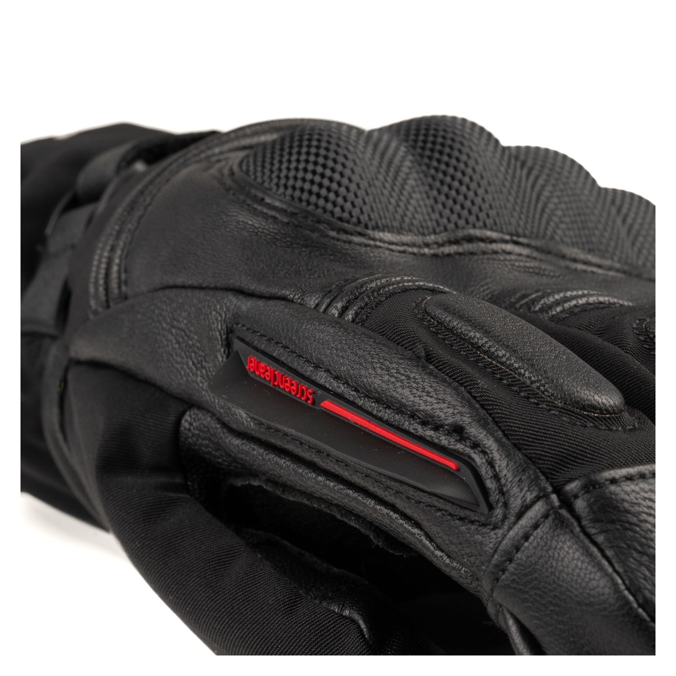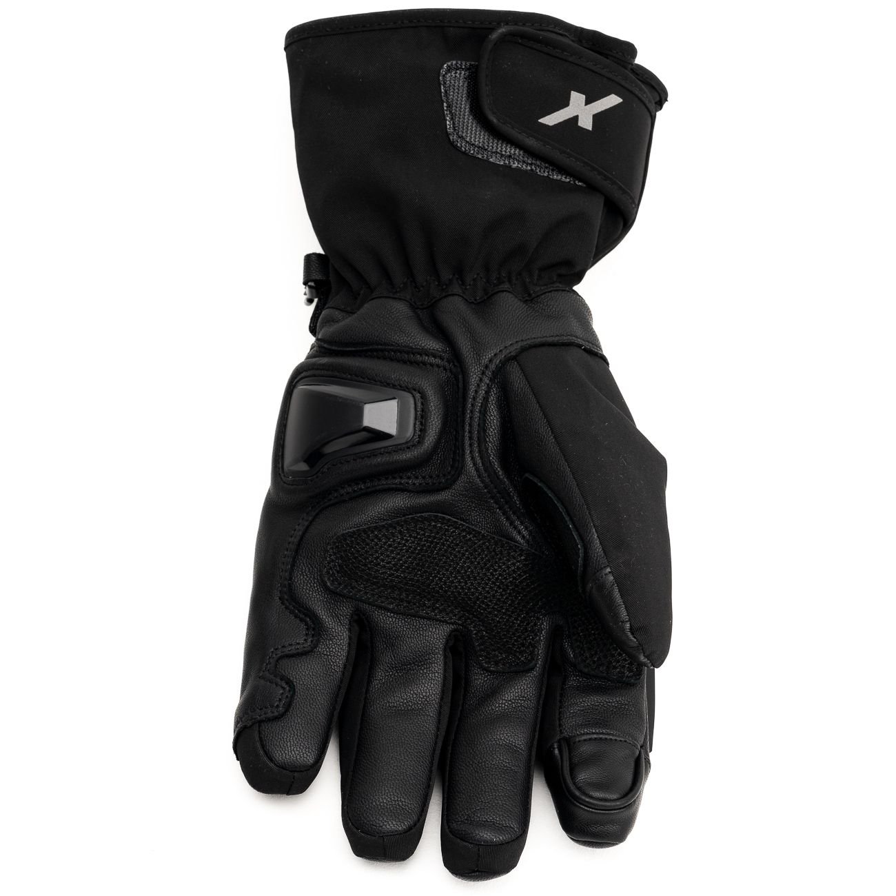 Visuellement, les DXR BLAZE jouent la carte de la sobriété. On est loin des gants racing criards : ici, place au noir majoritaire, à quelques détails discrets et à une allure très “hiver utilitaire”. La construction mixe 50% cuir de chèvre sur la paume et le dos de la main, et 50% polyester souple sur la manchette, le pouce et les doigts. Résultat : un gant qui n’a pas l’air massif, même s’il embarque une doublure chaude et tout le circuit de chauffe. Les protections métacarpes restent relativement intégrées dans la ligne, sans effet “coque de robot” trop marqué. La manchette est assez longue pour bien recouvrir la veste, avec les poches batteries positionnées à l’extérieur, fermées par zip. Visuellement, on voit que c’est du pratique avant tout. Pas tape-à-l’œil, mais pas cheap non plus.