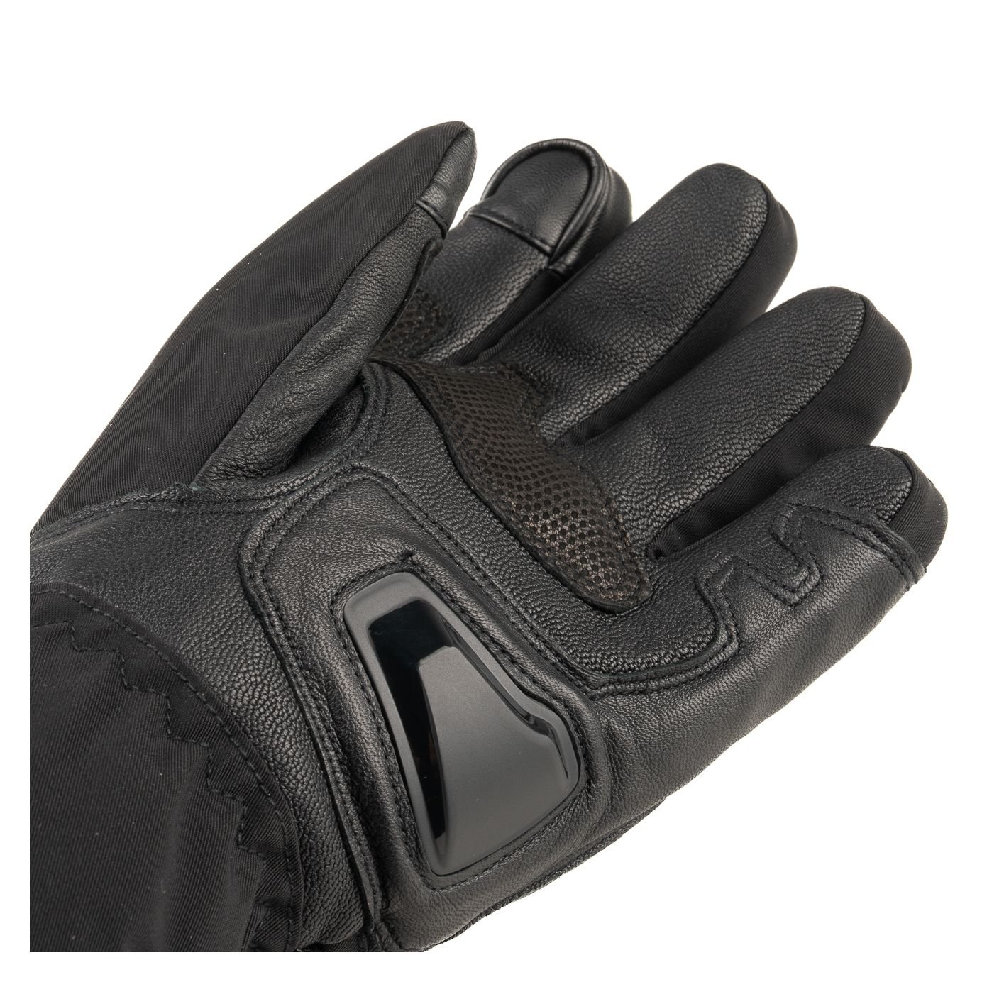 Les DXR BLAZE misent sur une protection cohérente avec leur usage routier et quotidien. Ils sont certifiés selon la norme CE EN 13594 niveau 1KP, ce qui garantit un niveau de sécurité validé pour la moto. On retrouve des protections métacarpes sur le dessus de la main, intégrées dans la structure sans trop gondoler la surface. La paume bénéficie d’un renfort en plastique, associé au cuir de chèvre qui encaisse bien l’abrasion. Sur le côté externe de la main, des renforts en cuir supplémentaires viennent jouer le rôle de bouclier en cas de glissade latérale – typiquement ce qu’on attend d’un gant conçu pour la route. C’est sérieux, fonctionnel, sans surenchère racing inutile sur un gant chauffant.