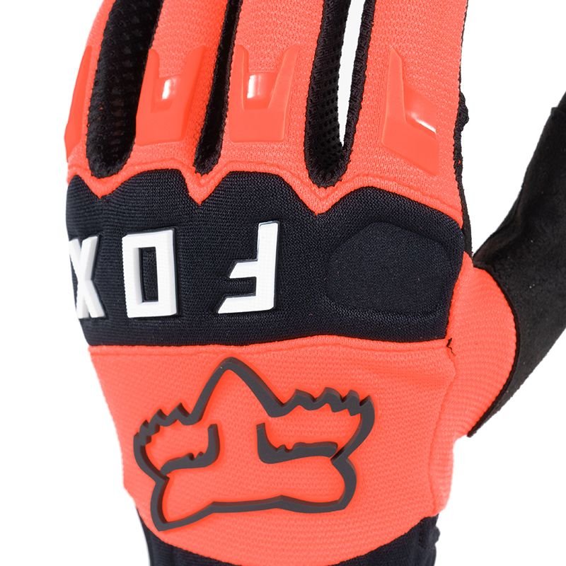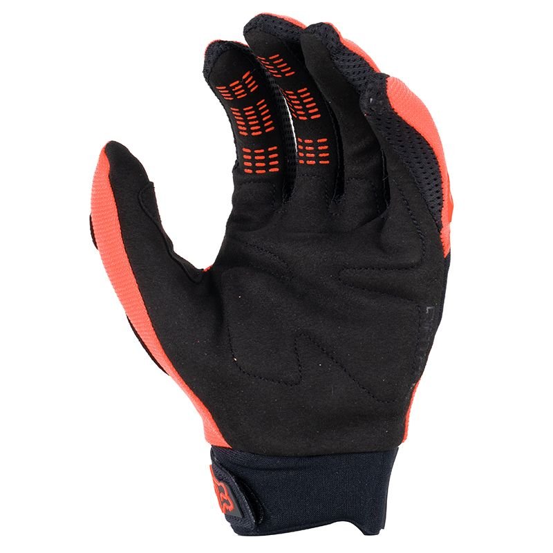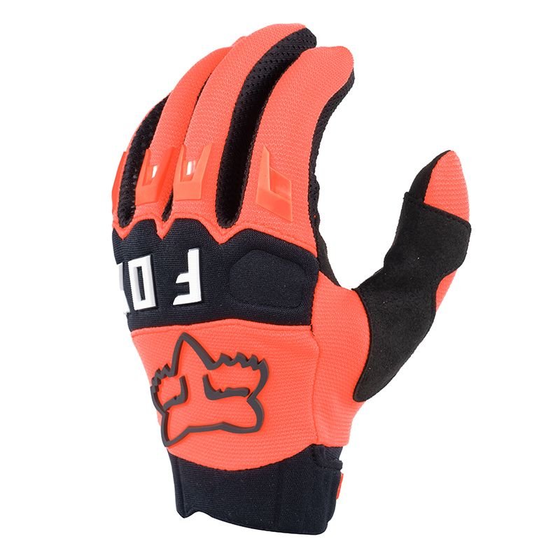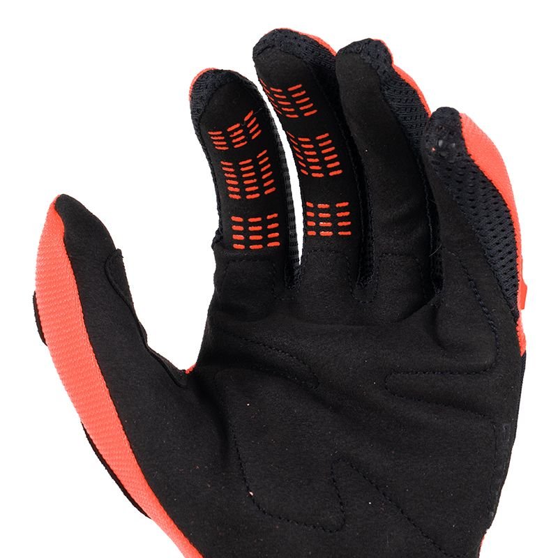 Dès qu’on sort les Fox DIRTPAW ORANGE FLUO 2023 de l’emballage, le ton est donné : c’est vif, agressif, typé motocross pur jus. L’orange fluo ne fait pas semblant, il ressort vraiment, autant pour le style que pour la visibilité sur les photos et au milieu du peloton. La signature Fox est bien présente, avec un graphisme net, des logos propres et des coutures globalement régulières. Le dessus de main en polyester stretch promet une bonne liberté de mouvement, sans surplus de matière inutile. Les articulations matelassées et doublées se devinent visuellement mais restent bien intégrées à la ligne générale du gant. On est sur un design typé racing mais pas surchargé, ce qui plaira autant aux amateurs de lignes épurées qu’aux fans de couleurs qui claquent.