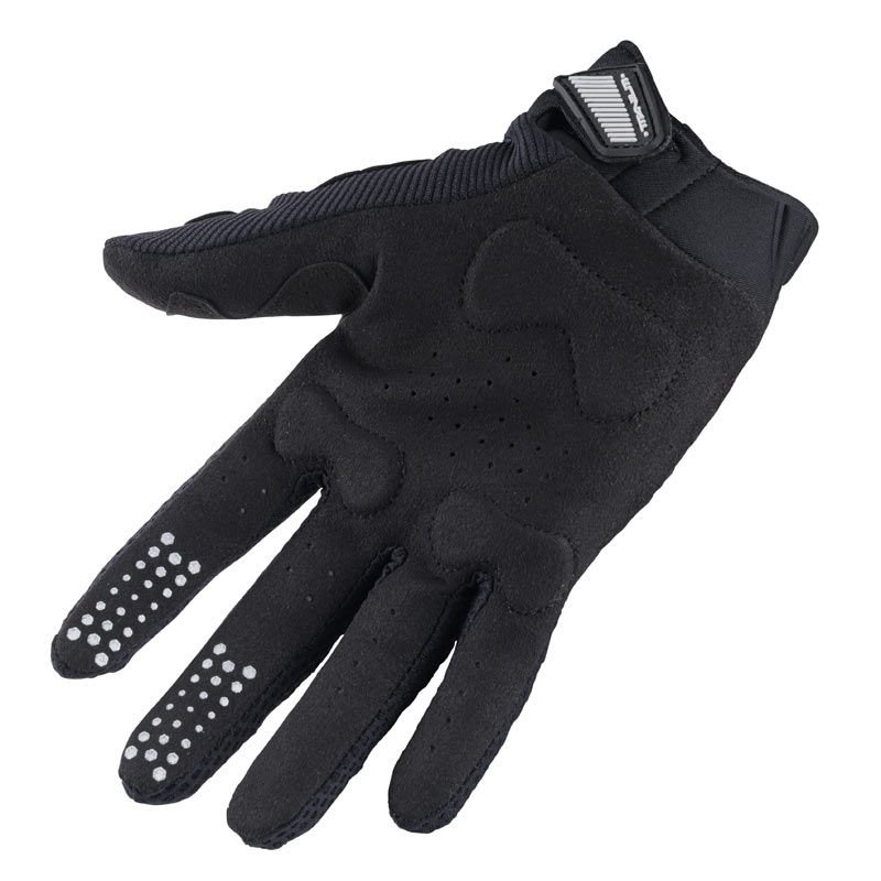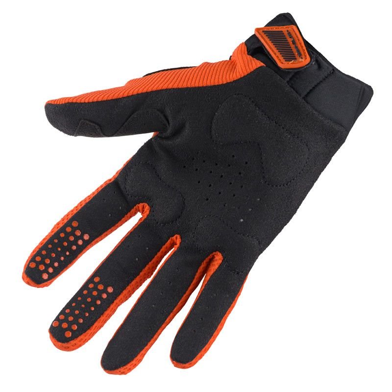 En dynamique, ces gants se font vite oublier. Le tissu souple et fin favorise un excellent retour d’informations du guidon : on sent bien les mouvements de la moto, les petits décrochages de l’arrière et la surface du terrain. C’est idéal pour ceux qui aiment piloter “au toucher”. La contrepartie, c’est qu’on n’a pas le moelleux d’un gant plus épais ou doublé : le confort est clairement orienté pilotage plutôt que balade pépère. Les coutures restent discrètes, même sur les longues sessions, et on n’a pas de plis gênants dans la paume, un détail qui fait souvent la différence après plusieurs manches. À noter : comme souvent avec les gants cross, mieux vaut choisir la bonne taille, voire éviter de serrer trop fort le Velcro, pour ne pas brider la circulation. Une fois bien ajustés, ils offrent un excellent compromis entre confort brut et précision. Bref, ils donnent envie d’attaquer un tour de plus.