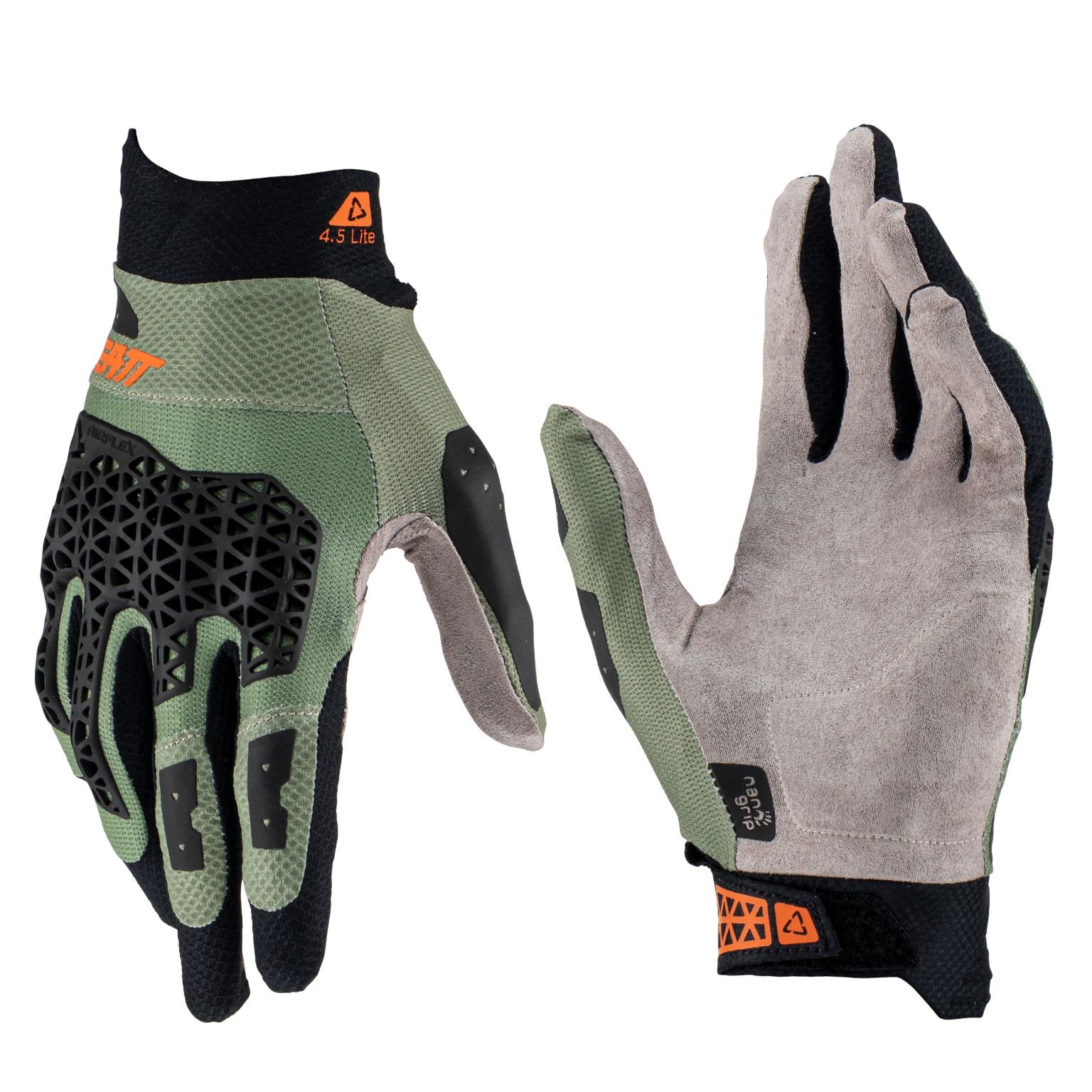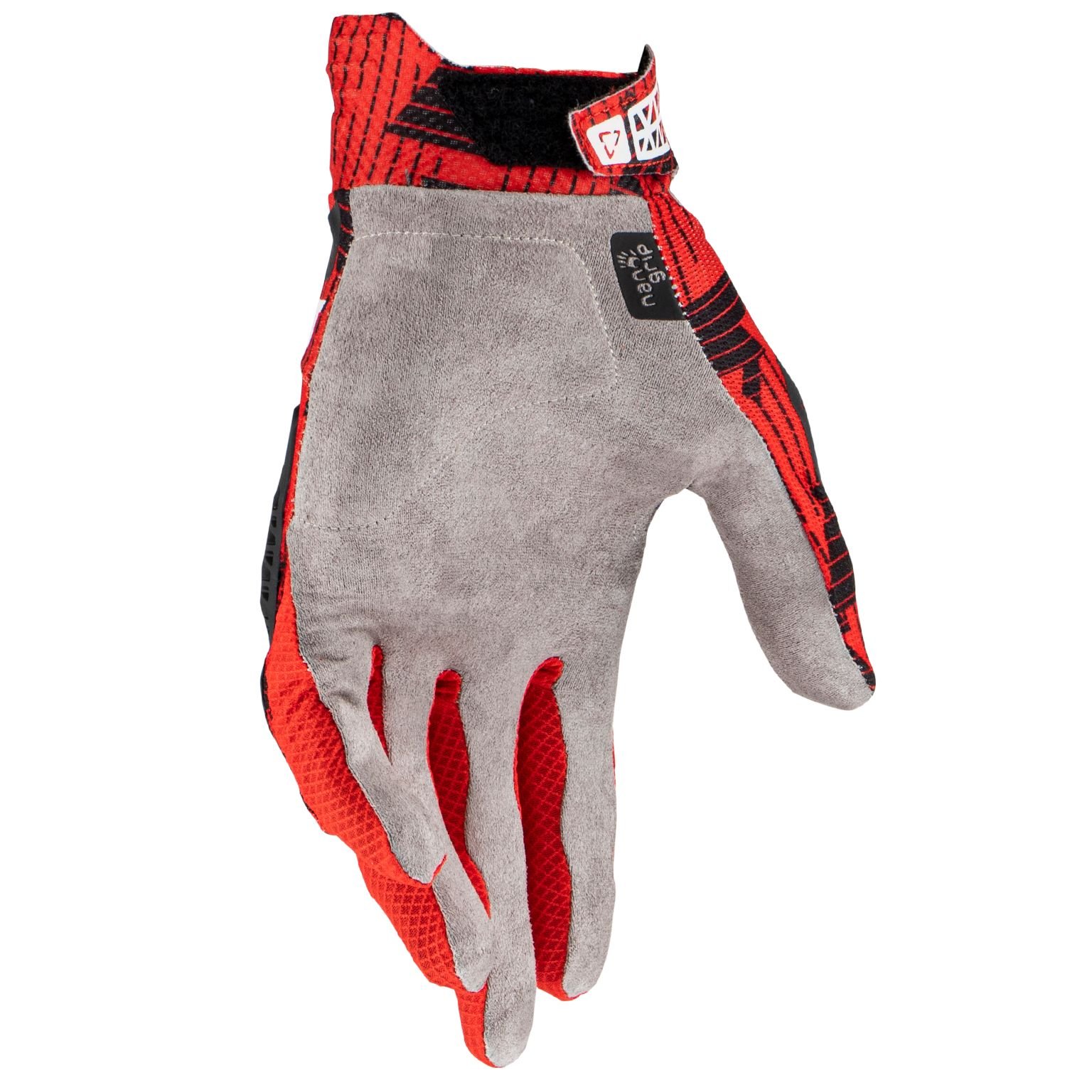 Côté conception, Leatt a misé sur une structure assez technique pour un gant motocross. Le dos en tissu stretch ventilé est là pour épouser les mouvements, pendant que la paume reçoit un revêtement en fibres NanoGrip. Cette matière donne tout de suite une impression de produit premium au toucher, presque collant sur les poignées, dans le bon sens du terme. La paume est pré‑courbée et sans coutures directes sur les zones de pression principales, ce qui limite les irritations. Les renforts en daim synthétique sont bien positionnés, sans transformer le gant en brique rigide. Les coutures Stretch Stitch et le principe FormFit aux doigts montrent que Leatt a réfléchi à la fois au confort et à la longévité. Bref, sur la table, le 4.5 LITE fait sérieux, propre, et clairement orienté performance.