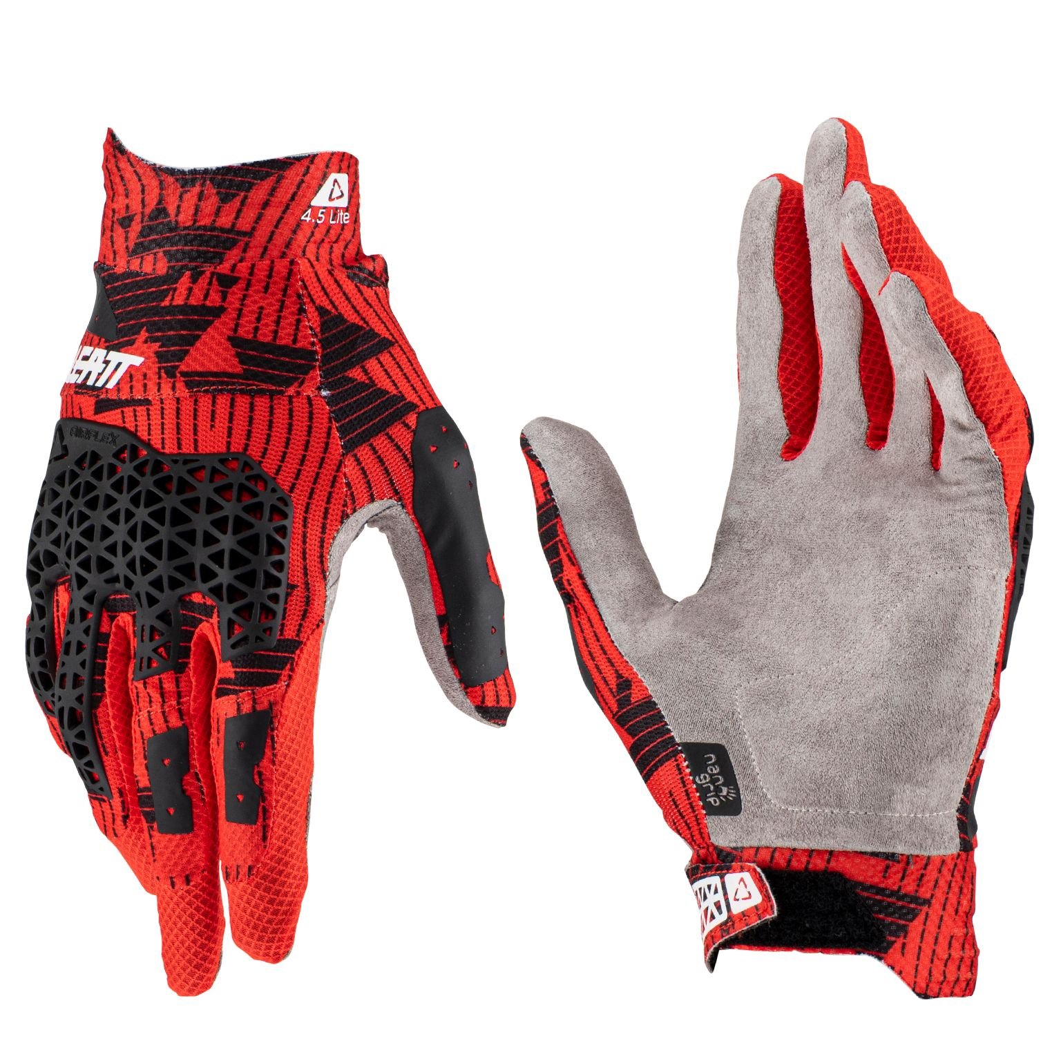 Visuellement, les gants cross Leatt 4.5 LITE 2023 respirent la performance. Le dos de la main en tissu extensible léger donne un look très racing, avec une coupe près de la peau qui évite l’effet « gant qui flotte ». Leatt a soigné les volumes : rien ne dépasse, aucune surépaisseur gênante au niveau des coutures principales, et les protections AirFlex sont intégrées de façon assez discrète. On voit tout de suite qu’on n’est pas sur un gros gant chaud, mais sur un modèle pensé pour les manches rapides, en MX ou en enduro léger. Les marquages restent sobres mais lisibles, ce qui plaira à ceux qui aiment coordonner leur équipement sans ressembler à un sapin de Noël. Clairement, niveau style, il coche la case « pilote moderne » sans en faire trop.