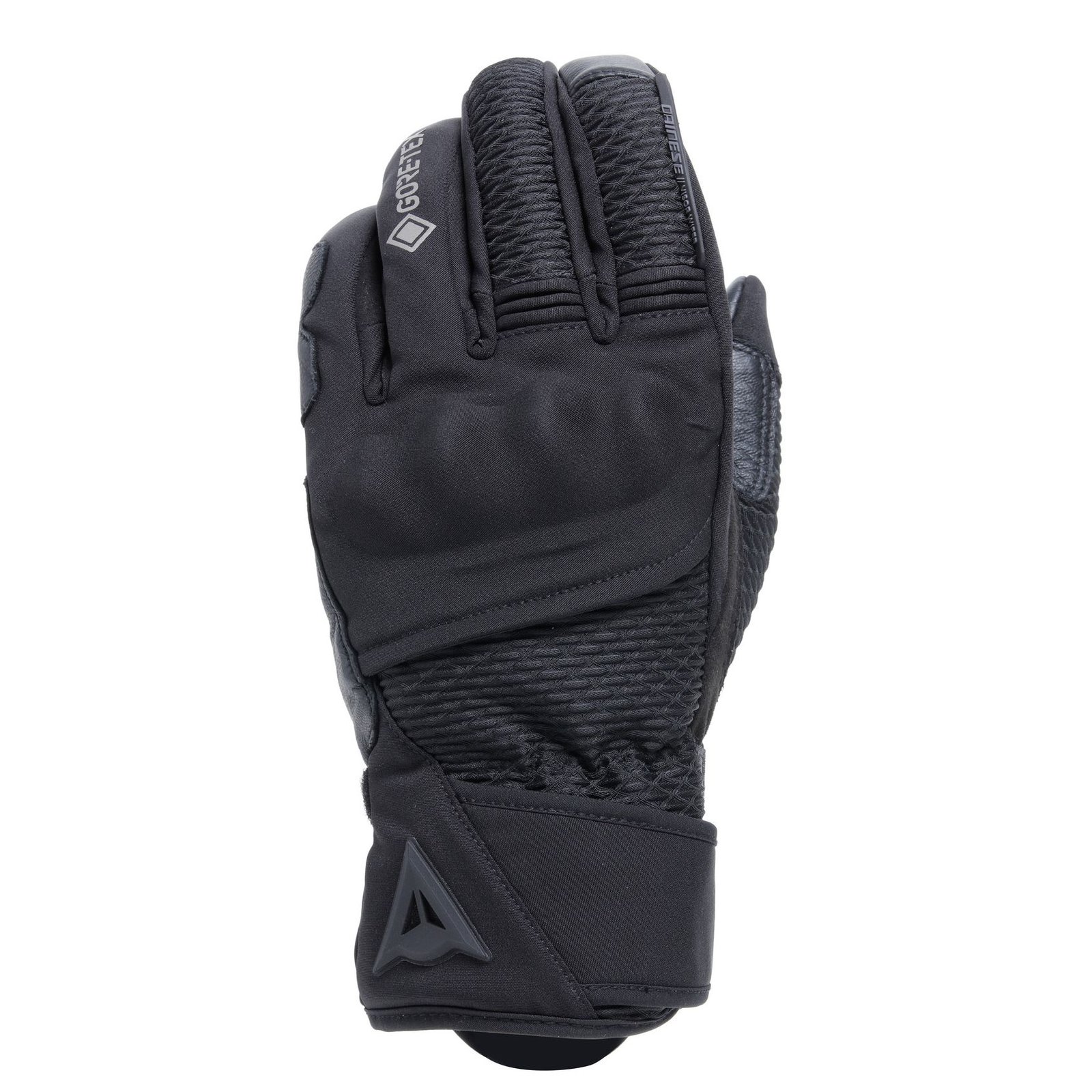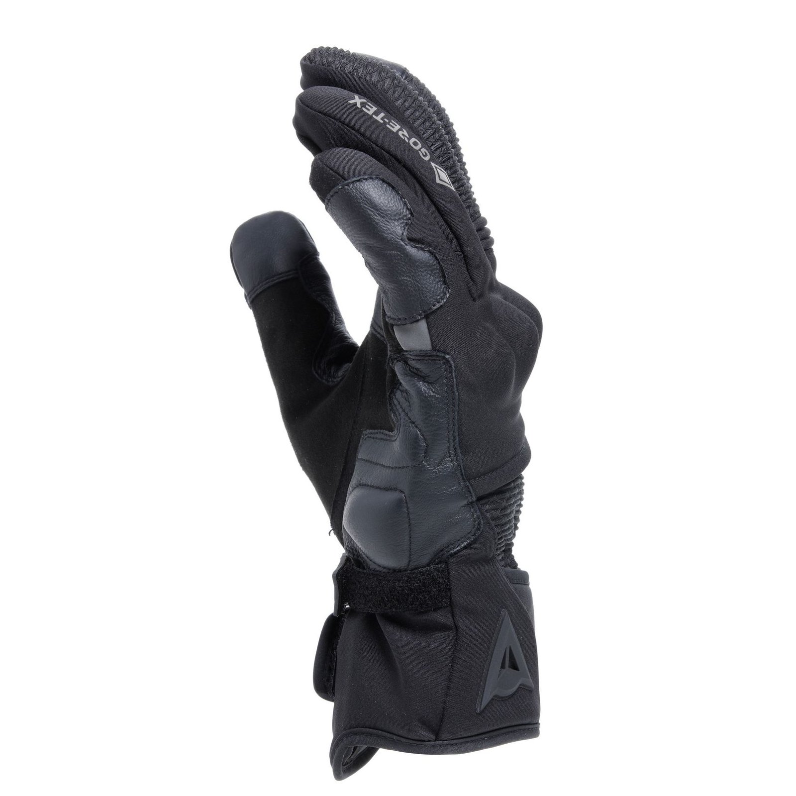 En termes de finitions, on est dans ce qu’on attend d’un gant Dainese dans cette gamme de prix : coutures régulières, matériaux cohérents, pas de fil qui dépasse ou de zone douteuse au premier coup d’œil. La sangle de serrage au poignet est bien intégrée, avec une patte facile à attraper même avec l’autre gant déjà enfilé. L’essuie‑glace sur l’index est discret, mais suffisamment marqué pour être utilisable sous la pluie, ce qui n’est pas toujours le cas sur des gants plus stylés que pratiques. On remarque aussi le léger pré‑courbage des doigts, visible même posé à plat : un bon signe pour le confort au guidon. Bref, ce n’est pas le gant le plus spectaculaire de la gamme Dainese, mais côté design fonctionnel, il coche les bonnes cases.