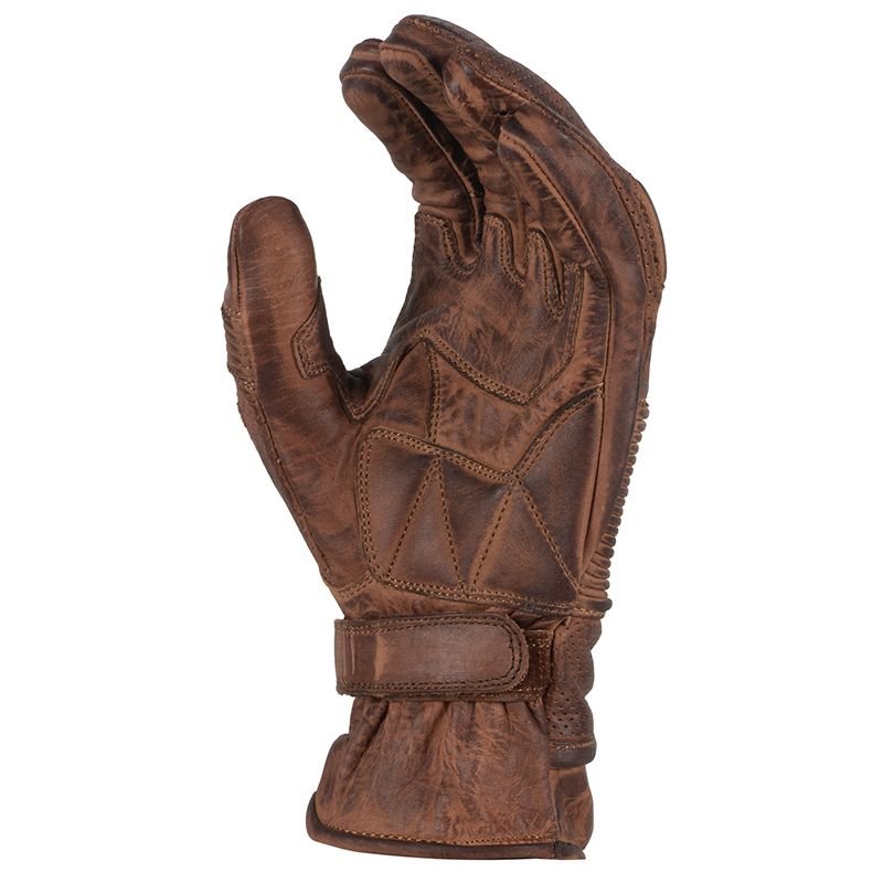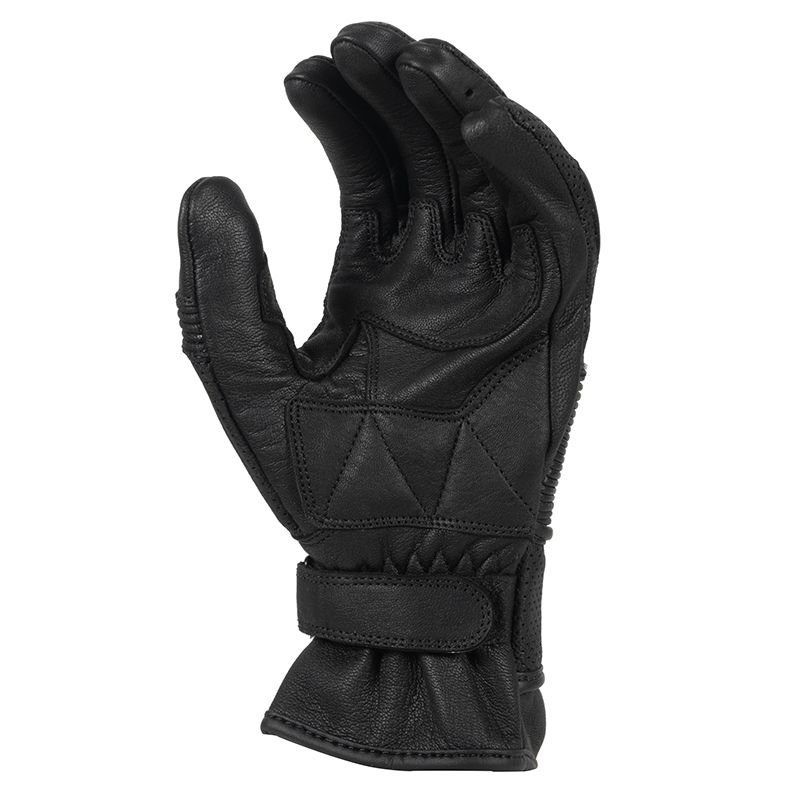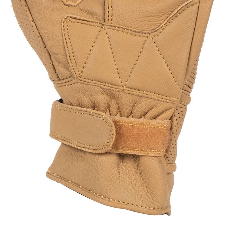 Côté finitions, le cuir de chèvre des SOUNDTRACK PUNCHER présente un grain assez fin et souple, typique de ce type de cuir, agréable en main dès le départ. Les coutures tombent bien, sans surépaisseur gênante à l’intérieur de la main, et les différentes pièces sont assemblées avec soin : pas de fils qui dépassent, pas de zones grossièrement pliées. Les perforations sont nettes, régulières, et la doublure polyester est suffisamment fine pour ne pas casser le ressenti des commandes. Le serrage poignet par système auto-agrippant est intégré dans la manchette sans effet “boule”. On est sur un gant qui reste simple mais bien exécuté. Ça ne transpire pas le haut de gamme, mais rien ne fait cheap. Bref, c’est l’illustration parfaite du design fonctionnel : pas là pour frimer, là pour rouler.
