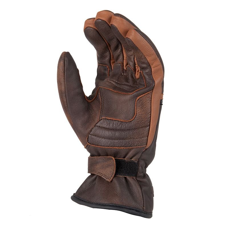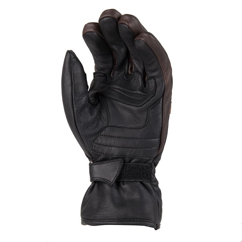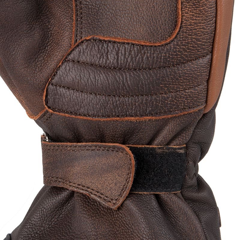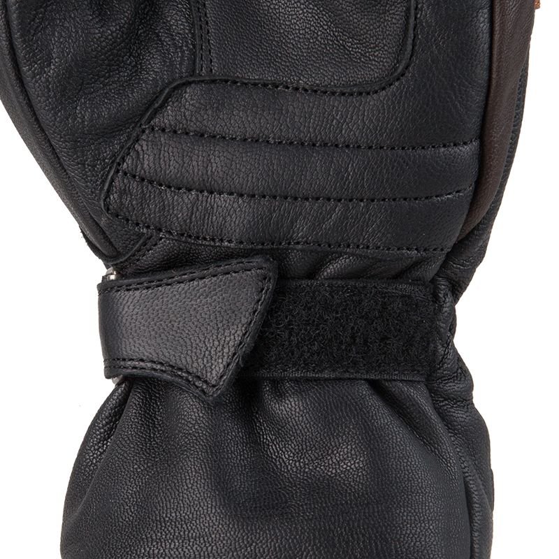 Dans le détail, on retrouve les petits choix de design qui facilitent la vie en hiver. Les gants sont préformés, ce qui évite d’avoir l’impression de serrer un ballon de baudruche autour du guidon. La manchette longue a une coupe assez large pour venir recouvrir la manche d’un blouson textile ou cuir, limitant ainsi les entrées d’air froid et de pluie. Le système de serrage poignet par bande auto-agrippante est simple, mais efficace : un premier ajustement au poignet, et un second plus haut pour bien plaquer la manchette. On regrettera peut-être l’absence de petites touches plus modernes comme un insert tactile sur l’index ou une raclette d’écran explicitement signalée, mais dans cette gamme, le compromis se tient. L’ensemble reste cohérent, lisible, sans mauvaise surprise esthétique. Bref, des gants qui ne font pas de bruit, mais qui s’intègrent dans n’importe quel équipement moto d’hiver.