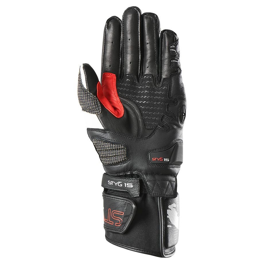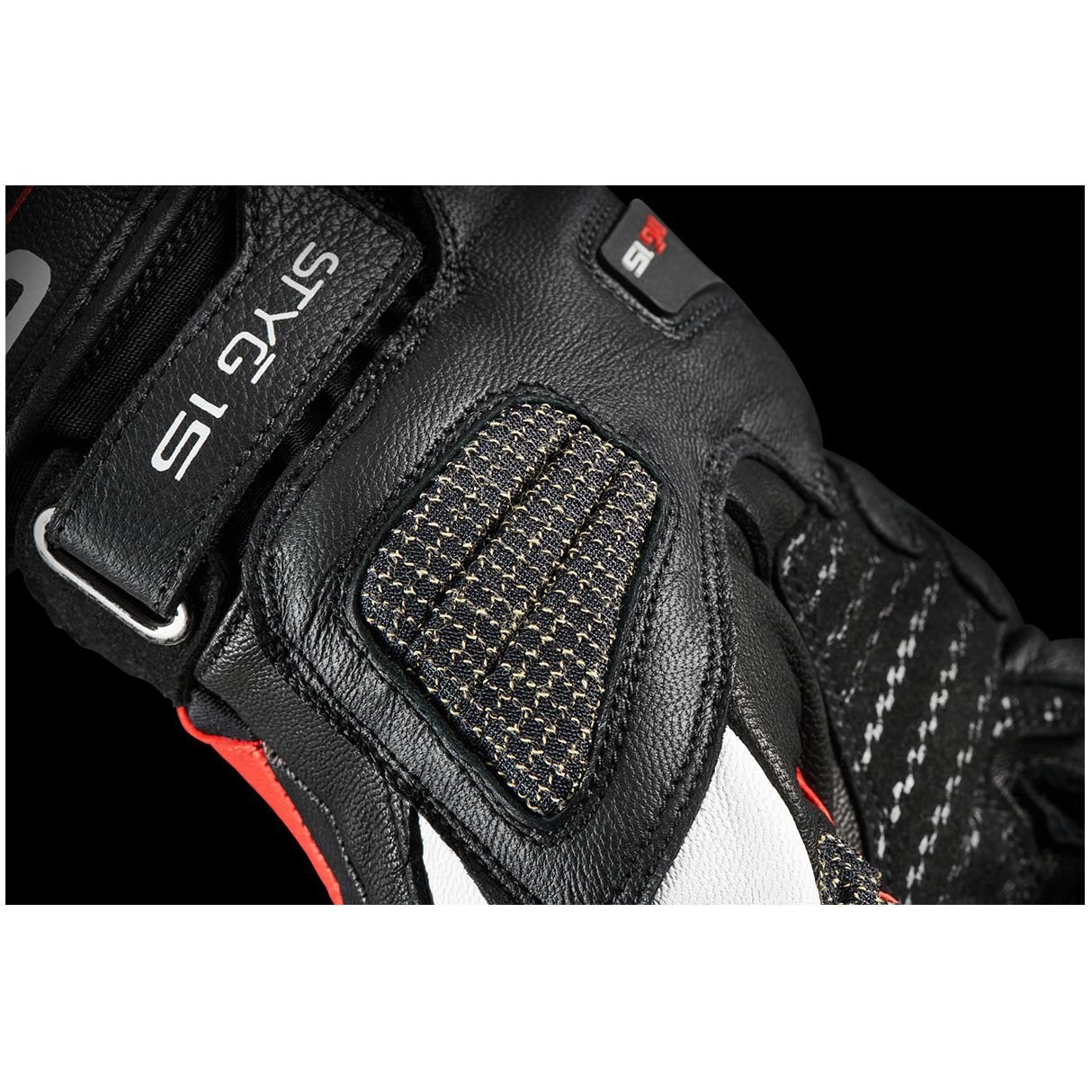 En main, les STYG 15 confirment cette bonne première impression. La finition générale est propre : cuir correctement tendu, renforts bien centrés, pas de fils qui dépassent. La manchette courte avec double serrage permet d’ajuster finement le gant autour du poignet, que tu roules avec un blouson textile ou cuir. Côté design fonctionnel, l’insert grip sur la paume tombe pile sur la zone de contact avec les poignées et les leviers, ce qui améliore la préhension sans coller exagérément. Les sliders sur la paume ajoutent une touche racing, mais surtout une vraie utilité en cas de glissade. On regrettera juste que certains coloris soient assez sobres : si tu cherches un gant très flashy, tu resteras peut‑être un peu sur ta faim. Mais pour un gant été orienté route/sport, l’équilibre look/sobriété est plutôt réussi.