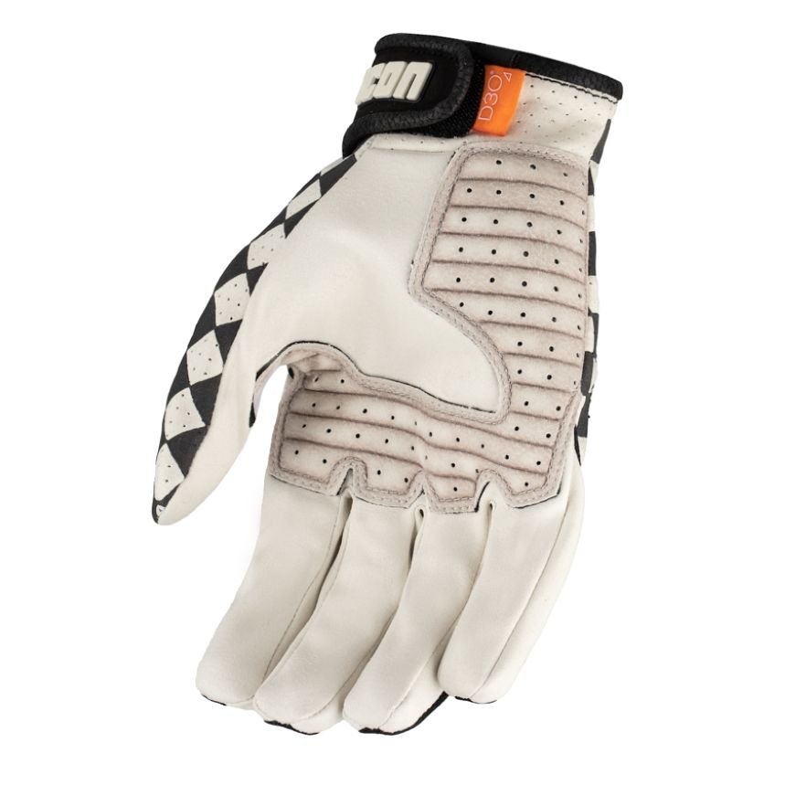 Les Icon AIRFORM SLABTOWN ne prétendent pas rivaliser avec un gant racing, mais ils proposent un niveau de protection très honnête pour des gants moto été ventilés. La pièce maîtresse, c’est la protection de phalanges en D3O® certifiée CE, intégrée sur le dessus de la main. Ce matériau est bien connu pour sa capacité à rester souple au quotidien, puis à se durcir instantanément lors d’un impact. Concrètement, ça veut dire qu’on n’a pas une grosse coque rigide gênante, mais un bon filet de sécurité en cas de chute. Sur la paume, les superpositions de matière Ax® Laredo ajoutent une couche de renfort bienvenue sur la zone qui va immanquablement frotter si l’on glisse sur le bitume. C’est discret, mais c’est là, et c’est exactement ce qu’on veut voir.
