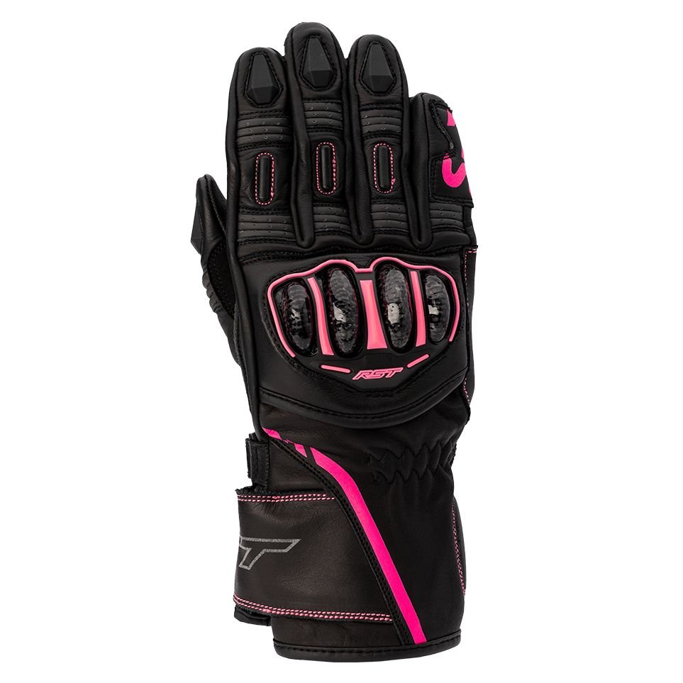 Visuellement, les gants RST S1 LADY assument complètement leur ADN sportif. La manchette longue, la coque carbone apparente et le slider de paume en TPR donnent tout de suite le ton : ce n’est pas un gant urbain discret. Pourtant, RST évite l’écueil du design trop agressif ou « cosplay piste ». Les lignes restent relativement fluides, avec une coupe adaptée aux mains féminines : moins massives, plus ajustées au niveau des doigts et du poignet. On voit que la structure part d’un gant racing, mais adouci pour un usage route. Les inserts TPR sur les doigts et la paume sont bien intégrés, sans effet « armure plastique » exagéré. En clair, visuellement, ça fait sérieux, sportif, sans tomber dans le too much. Et sur un roadster moderne, ça colle parfaitement.